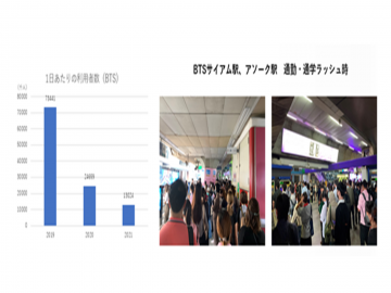 バンコクの現状 2020年コロナ禍のバンコクでは夜間外出禁止令が出され、各交通機関は運行時間を短縮して営業していた。 また、規制より郊外への移動の自粛や外出を控えるよう求められていることなどもあって利用客は大きく落ち込んだ。 バンコク首都圏の都市鉄道(BTS,MRT,エアポートレールリンク)及びタイ国鉄を合計した1日当たりの乗客は、コロナ前の 2019年が123万人以上だったのに対し2021年は21万人程度にまで急減したが現在コロナ前に近い日常の様子に戻りつつある。 次 一覧へ戻る